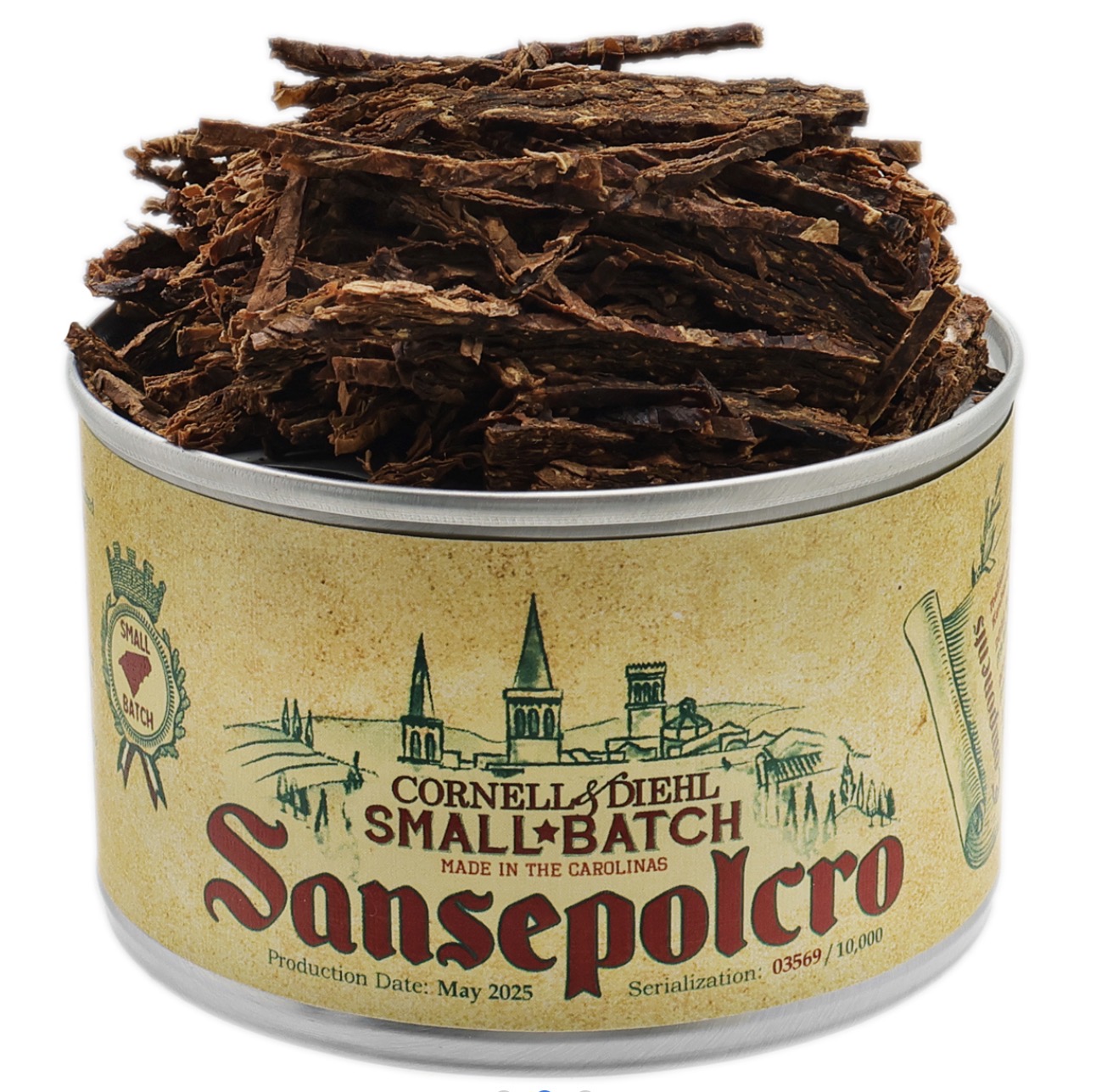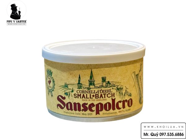 Cornell & Diehl’s Small Batch: Sansepolcro là hỗn hợp Virginia độc đáo, duy nhất, trưng bày những lá thuốc tốt nhất từ cả hai bờ Đại Tây Dương. Nền tảng của hỗn hợp này là tuyển chọn KY171 Italian Dark-Fired Kentucky kỳ lạ — được trồng, xử lý và lên men kép tại một trang trại nhỏ ở vùng Sansepolcro của Ý, nơi tự hào có lịch sử và truyền thống trồng thuốc lá có từ thế kỷ 17. Nâng tầm cho loại lá lịch sử này là các loại Virginia đỏ và sáng hảo hạng, cùng với lượng Cavendish đen Dominican không đường hoàn hảo, và toàn bộ hỗn hợp được ép trong bảy ngày để hòa quyện hương vị trước khi được thái thành những mảnh mỏng manh. Kết quả là một làn khói phức hợp, quyến rũ với hương cam quýt dịu nhẹ và hương gia vị nhẹ nhàng, có mùi đất, giống như đinh hương.